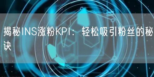 揭秘INS涨粉KPI:轻松吸引粉丝的秘诀